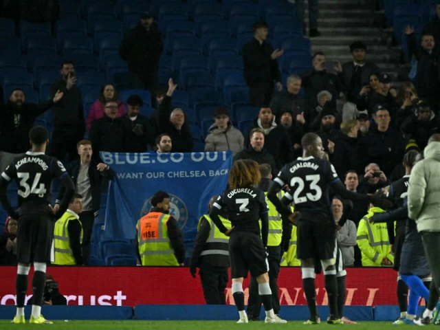 Chelsea’s fans make their feelings known to the players after Tuesday’s defeat at Brighton. Photo: AFP