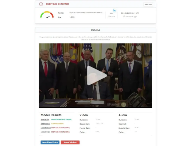 Deepware AI indicated a 52pc likelihood of manipulation.
